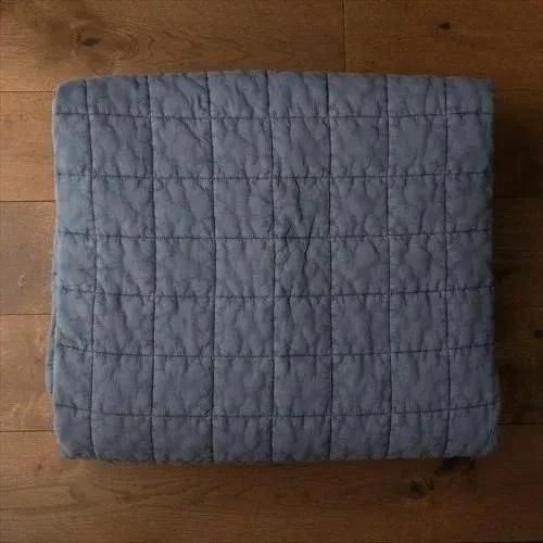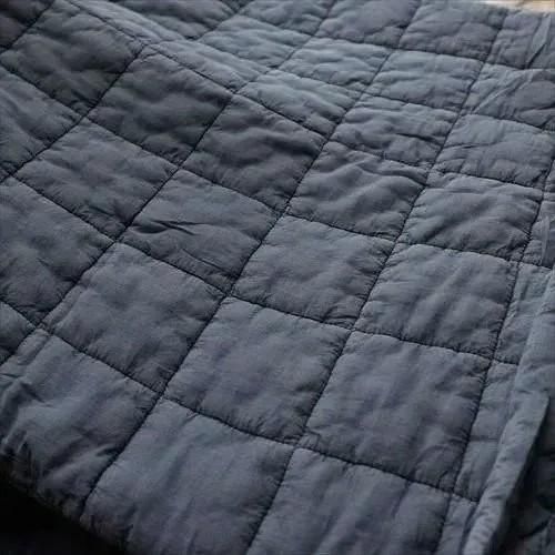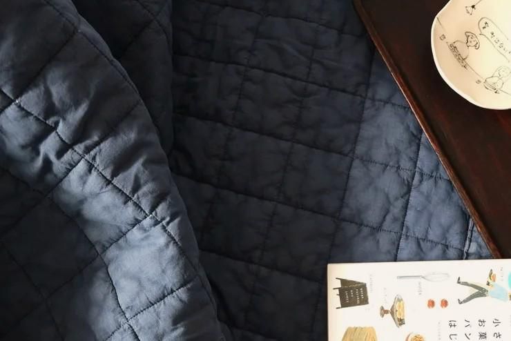 6.5cm間隔のミシンステッチの正方形がきちんと並び、キルティングの間隔が広いため中綿のふーんわり感が実感していただきやすいと思います。