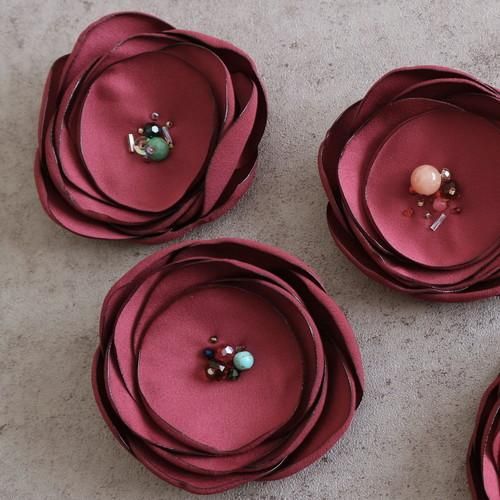 □ 素材:ポリエステル布、ビーズ、台座付ブローチピン シルバー(台座の裏面に細かい傷がある場合がございますことご了承ください)