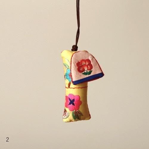 昔、オモニが作られていた針山を思い出し、職人の方が新しい布と新しい糸で刺繍し作られた針山です。